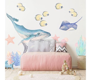 PASTELOWE Zidne naljepnice set uključuje: kita, ražu, ribu, morsku zvijezdu, školjke, koralje, morske alge. Kolekcija ocean zidnih naljepnica stvorena je za lj… Pročitaj više