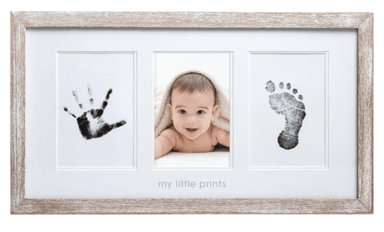 PEARHED Rustikalni zidni okvir BABYPRINTS, dupli tisak i slika dizajniran je za pohranu dječje fotografije i otisaka ruku i stopala. Uključuje tintu i podlogu za ispis.