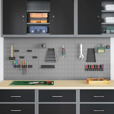 Tri čelična pegboard panela ukupnih dimenzija 150x60 cm pružaju svestrano rješenje za pohranu u radionicama i garažama. Uz 15 dodataka... Pročitaj više