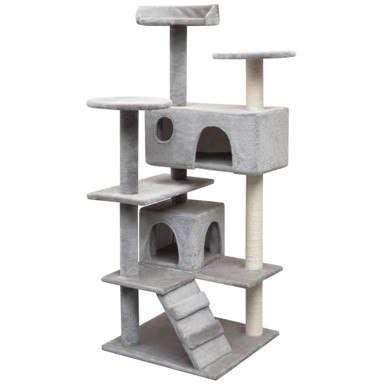 Pružite svojim mačjim prijateljima dašak luksuza s našom penjalicom za mačke prepunom značajki! Ovaj mačji centar za igru s više katova i čvrstim okvirom obloženim mekanim, udobnim plišem, savršeno je utočište po kojem se vaše mačke mogu penjati, skakati, skrivati, odmarati i grebati. Vaši krzneni prijatelji mogu oštriti svoje kandže na stupovima za grebanje koji su omotani sisal konopcem. Grebalice su odlično mjesto gdje mačke mogu zadovoljiti svoje instinkte za grebanjem. Mačke također mogu uživati dok razigrano love jedna drugu i skaču po ovom zabavnom centru za igru. Kad se zasite igranja, vaši mali prijatelji će uživati u odmaranju na gornjim platformama odakle im se pruža bolji pogled. Također se mogu sakriti u udobne kućice da odrijemaju. Zbog svih zabavnih značajki koje posjeduje, ova penjalica će sigurno postati omiljeno mjesto vaših krznenih prijatelja! Boja: Siva Materijal: Drveni okvir + konopci od sisala + meki pliš Ukupne dimenzije: 67 x 67 x 125 cm (D x Š x V) Dimenzije veće kućice: 50 x 25 x 21 cm (D x Š x V) Dimenzije manje kućice: 25 x 25 x 21 cm (D x Š x V) Veličina: 50 x 50 cm (D x Š) S ljestvama, kućicama, stupovima za grebanje i platformama Tkanina: Poliester: 100%