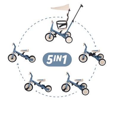 PETITE MARS tricikl Turbo Plus 5u1 u boji Ocean Blue kombinira funkcionalnost i moderan dizajn kroz pet različitih načina korištenja. Podesivi elementi i kvalitetni materijali omogućuju dugotrajnu i sigurnu upotrebu. Zahvaljujući laganoj konstrukciji i jednostavnoj transformaciji bez alata, prilagođava se potrebama djeteta u svakoj fazi razvoja.