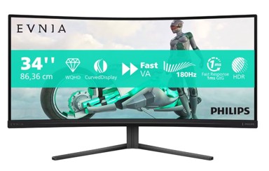 Philips Monitor Evnia 3000 34M2C3500L 34 Curved VA, 3440x1440 (WQHD), 180Hz, 0.5ms, 300 cd/m², 4000:1, HDR10, 2x HDMI, DisplayPort, Adaptive Sync, 3-year warranty