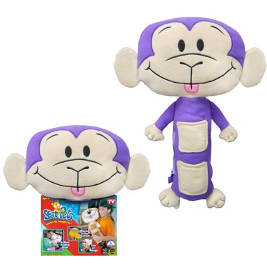 Pričvrstite ljubičastog majmunčića za sigurnosni pojas auto sjedalice i vaše dijete će imati lijepog prijatelja za putovanja. Dijete može držati svoje omiljene igračke u prednjim džepovima na njegovom trbuščiću ili se odmarati na mekanoj plišanoj igrački.