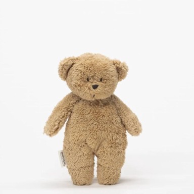 Plišani medo izrađen od 100 % organskog pamuka nježan je prema dječjoj koži i prilagođen senzornoj igri. Zahvaljujući kompaktnim dimenzijama, lako se drži u malim rukama te postaje vjeran suputnik pri uspavljivanju, igri ili na putovanjima.