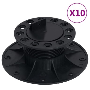 Set podesivih nogu idealan je za daske trijema na vrtu, krovnim terasama i balkonima. Izrađen od čvrstog i izdržljivog polipropilena, nudi dugotrajnu upotrebu. Podesiva visina omogućava lako i precizno niveliranje, pružajući stabilnu potporu ispod trijema. Glavne karakteristike uključuju crnu boju, promjer vrha od 13,8 cm i promjer dna od 19,8 cm. Visina se može podesiti od 60 do 88 mm, a montaža nije potrebna. Set uključuje 10 podesivih nogu.