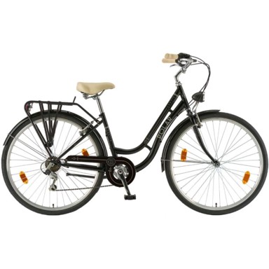 Polar Grazia 6s Retro Gradski bicikl u klasičnom retro dizajnu. Grazia Retro opremljena je korisnim dodacima koji značajno poboljšavaju udobnost korištenja. Naramenica straga za siguran transport vaše torbe, stvari iz trgovine, garderobe... Iznad kotača su blatobrani u boji koji štite biciklista od vode i prljavštine. Tu je i rasvjeta koja jamči odgovarajuću vidljivost i sigurnost u vožnji po mraku. Okvir bicikla dizajniran je tako da nećete imati problema s ulaskom ili silaženjem s bicikla. Zakrivljeni upravljač omogućuje vam da zauzmete udoban, uspravan položaj, a široko sjedalo s oprugom ublažit će udarce od neravnina na cesti i povećati starost vožnje. Bicikl je opremljen pogonom 1x6. Shimano stražnji mjenjač omogućuje brzu i jednostavnu promjenu stupnjeva prijenosa kako bi se prilagodio vašim trenutnim potrebama ovisno o terenu, nagibu i potrebnoj brzini. Shimano sustav karakterizira jednostavnost korištenja i velika izdržljivost. Proces mijenjanja brzina iznimno je jednostavan, laganim okretanjem ručice mjenjača na upravljaču. Za kočenje su zaslužne pouzdane V-brake kočnice. V-kočnice su provjereno i cijenjeno rješenje. Jamče jednostavnu kontrolu brzine i omogućuju brzo zaustavljanje bicikla. Njihov jednostavan dizajn omogućuje dug i besprijekoran rad. Kotači od 28" lako će podnijeti neravnine na cesti, dok gume pružaju dobro prianjanje na suhom asfaltu i mali otpor kotrljanja.