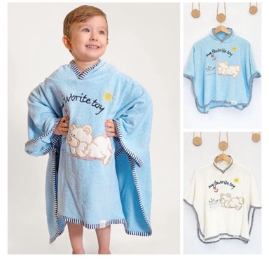 Pončo ručnik za djecu veličine 92 idealan je izbor za plažu ili kupanje kod kuće. Zahvaljujući komotnom kroju, omogućuje udobnost i slobodu kretanja. Prikladan je za djecu približno staru dvije godine, a izrađen je od mekanog i upijajućeg materijala koji nježno obavija dječju kožu nakon kupanja.