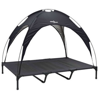 Povišeni krevet s krovom dizajniran je za velike pasmine poput njemačkih ovčara i rotvajlera. Povišena struktura smanjuje pritisak na zglobove i poboljšava protok zraka, dok krović štiti od izravnog sunca. Kvalitetna poliesterska tkanina i čvrsti metalni okvir osiguravaju trajnost čak i kod svakodnevne upotrebe. Krevet se može sklopiti, što olakšava transport i skladištenje. Idealan je za korištenje u vrtu, na terasi ili u dnevnom boravku. Dimenzije: 93 x 122 x 106,5 cm. Montaža je jednostavna i zahtijeva dvije osobe.