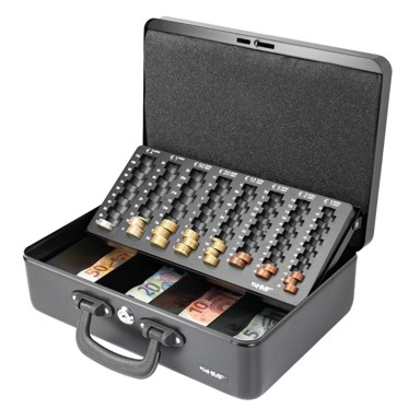 Prijenosna kutija za novac s ladicom za novčanice i kovanice je robusna kasa za sigurno pohranjivanje i transport gotovine. Ima ladicu s 4 pretinca za novčanice... Pročitaj više