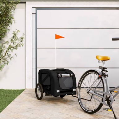 Prikolica za bicikl za pse crna od tkanine Oxford i željeza