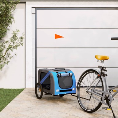 Prikolica za bicikl za pse plavo-siva od tkanine i željeza