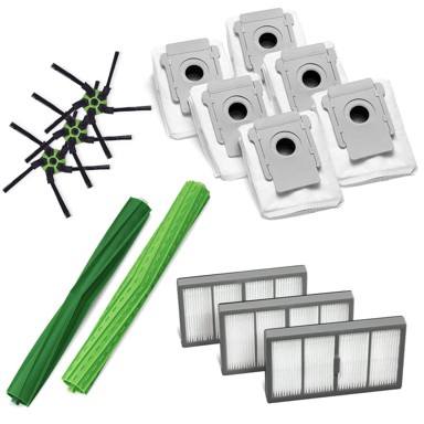 PRIME mega-pack za Roomba S9+ sadrži AeroForce četke, tri seta bočnih četki, tri HEPA filtra i šest vrećica za stanicu CleanBase. Paket omogućuje sveobuhvatno servisiranje sustava usisavanja i samopražnjenja.