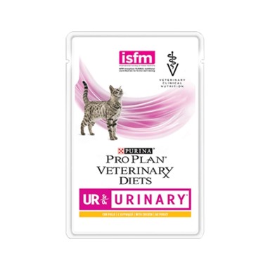 Pro Plan Cat Veterinary Diets UR Urinary potpuna je dijetetska hrana za odrasle mačke znanstveno formulirana kako bi prehrambeno pomogla kod upravljanja bolesti donjeg mokraćnog sustava (FLUTD). Hrana pomažepomaže otapanju struvitnih mokraćnih kamenaca i smanjuje rizik od njihove ponovne pojave. Prehrana također pomaže u smanjenju rizika od nastanka mokraćnih kristala oksalata i stvaranja kamenaca. Povećano konzumiranje vode pomaže u razrjeđivanju urina i sprječava ponovni nastanak kamenaca. Hrana nije prikladna za skotne mačke, rastuće mačiće i mačke s kroničnom bubrežnom bolešću.