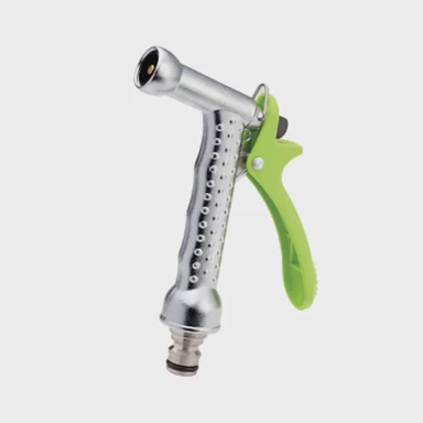 Kromirani metalni raspršivač u obliku pištolja izrađen je od čvrstih i izdržljivih materijala koji osiguravaju dugotrajan i pouzdan rad. Ergonomski oblik omogućuje ugodno rukovanje i preciznu kontrolu protoka vode tijekom zalijevanja.