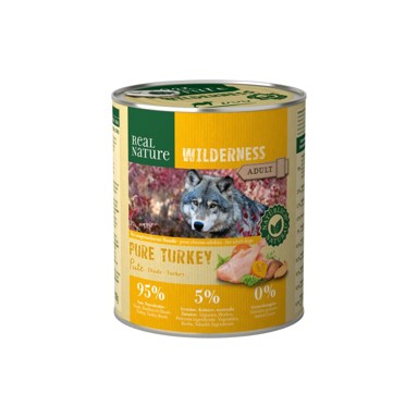Real Nature Wilderness Adult puretina je potpuna hrana za odrasle pse koja je temeljena na prehrani vukova, pretka vašeg psa. Puretina i pureći temeljac uz dodatak batata, bundeve, maslačka, stolisnika, koprive, gloga i lososovog ulja čini zdrav i ukusan obrok.