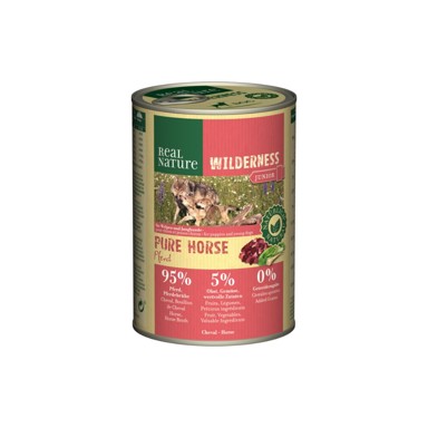 Real Nature Wilderness Junior konjetina je potpuna hrana za štenad i mlade pse svih pasmina i veličina, od prestanka sisanja do otprilike 24 mjeseca starosti (ovisno o veličini psa). Ukusan i zdrav obrok pipremljen od konjetine i temeljca od konjetine uz dodatak prirodnih sastojaka poput pastrnjaka, blitve, maslačka, stolisnika, koprive, gloga i lososovog ulja.