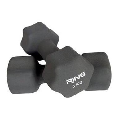 RING neopren bučice 2x5 kg nude savršen omjer težine, udobnosti i sigurnosti. Izrađene od lijevanog metala obloženog neoprenom, otporne su na udarce i habanje... Pročitaj više