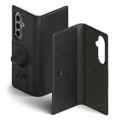 Ringke – Magnetni novčanik Folio Grip za Samsung Galaxy Z Fold 7 – crni Odvojiva futrola-novčanik dizajnirana za Galaxy Z Fold 7 Ringke Folio Wallet Magnetic je futrola koja magnetski pričvršćuje vašu MagSafe/Qi2 futrolu. Kada pričvrstite futrolu na futrolu, zaštićeni su i prednja i stražnja strana vašeg Samsung Galaxy Z Fold 7. Futrola ima prednji preklop koji prekriva zaslon, držeći ga sigurnim čak i kada ne koristite telefon. Preklopna futrola sadrži tri kartice, uz gotovinu i kovanice, tako da novčanik možete ostaviti kod kuće. Vaša najvažnija ili često korištena kartica može se pohraniti izvana, što joj omogućuje brz i jednostavan pristup. Postolje olakšava gledanje videa ili serije na telefonu bez upotrebe ruku. Prednosti Ringke Folio Wallet Magnetic futrole za Samsung Galaxy Z Fold 7: Napomena: Ovo je futrola koja magnetski pričvršćuje vašu MagSafe/Qi2 futrolu. MagSafe futrola NIJE uključena. Magnet u futroli olakšava uklanjanje stražnje maske s futrole. Štiti prednju i stražnju stranu telefona od oštećenja i prljavštine. U futroli možete pohraniti kartice, gotovinu i kovanice, tako da vam više ne treba novčanik. Stalak vam omogućuje udobno obavljanje videopoziva ili gledanje filma ili serije.