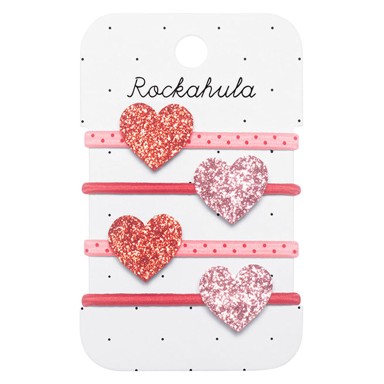ROCKAHULA Love Heart Glitter gumice za kosu ukrašene su svjetlucavim srcima, savršene za posebne prigode ili igru u kojoj sjaj i maštovitost imaju glavnu riječ. Elastičan i mekan materijal osigurava lagano i sigurno prianjanje.