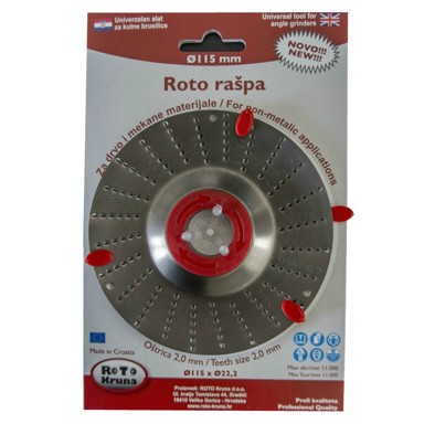 ROTO RAŠPA je univerzalni alat za kutne brusilice namijenjen za obradu drveta, plastike, guma, umjetnih smola i ostalih "mekih" materijala, pa i za obradu bakra i alumini… Pročitaj više
