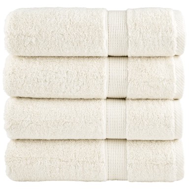Ručnici za kupanje idealni su za kućnu i komercijalnu upotrebu. - Super mekan i vrhunski materijal: Ručnici napravljeni su od 100 % prstenasto ispredenog pamuka, koji je mekan, izdržljiv i otporan na blijeđenje. Certificirani su prema STANDARDU 100 od strane OEKO-TEX-a i testirani na štetne tvari, što ih čini pouzdanima i sigurnima za upotrebu. - Upijajuće: Zbog mekane pamučne tkanine Ručnici za kupanje bolje apsorbiraju i mogu upiti više vode tijekom čišćenja. - Praktična petlja za vješanje: Svaki od ovih ručnika dolazi s pričvršćenom petljom za vješanje, što olakšava njihovo spremanje na kuke ili držače za ručnike. - Perivi u perilici: Ovi pamučni ručnici za kupanje savršeno su sigurni za strojno pranje i mogu se lako oprati toplom vodom i blagim sapunom. - Višenamjenska upotreba: Ručnici svojom mekoćom i izdržljivošću zadovoljavaju različite potrebe. Ovi su ručnici višenamjenski i pouzdani za tretmane ljepote ili svakodnevne poslove čišćenja. - Boja: Krem - Materijal: 100 % pamuk - Veličina: 100 x 150 cm (Š x D) - Vrhunska kvaliteta - 600 gsm - Certificirano prema STANDARDU 100 od strane OEKO-TEX-a - Strojno perivo - Isporuka sadrži: - 4 x ručnik za kupanje