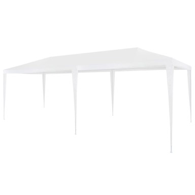 Šator za zabave pruža prekrasno mjesto za zabavljanje vaše obitelji i prijatelja na raznim proslavama i okupljanjima na otvorenom. Šator za zabave napravljen je od polietilenskog materijala otpornog na UV zračenje i vodu te je stoga vrlo praktičan za vanjsku uporabu. Okvir je izrađen od čelika otpornog na hrđu, što čini vanjski šator stabilnim i izdržljivim. Ova vrtna sjenica lako se sastavlja. NAPOMENA: Preporučujemo tretiranje tende vodootpornim sprejem ako je šator izložen velikim kišama. Ovaj se proizvod NIKAD ne smije upotrebljavati u lošim vremenskim uvjetima, kao što su jak vjetar, jaka kiša, snijeg, oluja itd. - Boja: Bijela - Materijal: Krov od PE-a i čelični okvir - Dimenzije: 3 x 6 x 2,55 m (D x Š x V) - Visina strehe od tla: 2 m - Otporno na UV-zračenje i vodu - Pribor za montažu uključen