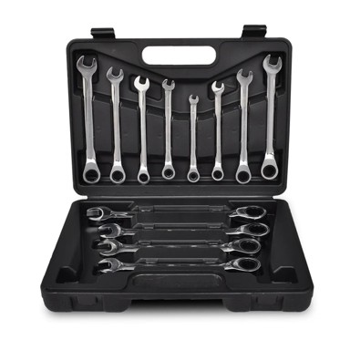 Set od 12 okasto-viličastih ključeva veličina 6-19 mm idealan je za popravke auta i rad u teško dostupnim prostorima. Ključevi imaju povratni kut od 5°, 12 zuba i kromiranu površinu za otpornost na hrđu, a dolaze u tvrdoj torbi za jednostavan transport i organizaciju.
