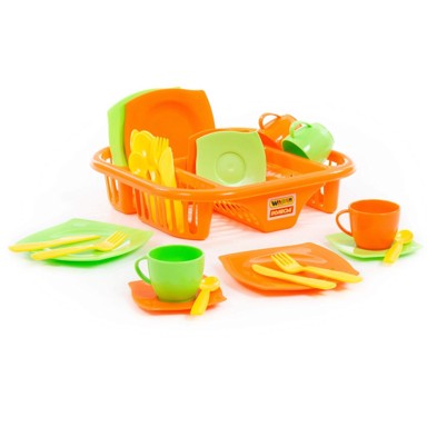 Set sušilo i posuđe od 29 komada sadrži različite elemente za igru i simulaciju kuhinjskih aktivnosti. Kombinacija pribora i posuđa omogućuje djeci razvijanje mašte i motoričkih vještina kroz igru uloga. Broj komada u kompletu čini set pogodnim i za dijeljenje među više djece.