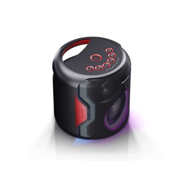 Sharp Party zvučnik PS-919(BK) je moćan i zabavan uređaj dizajniran za pružanje impresivnog zvuka i atmosfere na zabavama i događajima. Ovaj zvučnik ima visoku izlaznu snagu koja osigurava glasan zvuk i snažne basove, stvarajući energičnu atmosferu za ples i zabavu. S modernim dizajnom i LED svjetlima, PS-919(BK) dodaje vizualni efekt i atmosferu svakoj zabavi. Opremljen različitim priključcima poput Bluetootha, USB-a i AUX ulaza, ovaj zvučnik omogućuje reprodukciju glazbe s različitih izvora, uključujući pametne telefone, tablete, USB uređaje ili druge audio uređaje. S lakoćom prijenosa zahvaljujući ručkama i kotačima, Sharp Party zvučnik PS-919(BK) je idealan za mobilne zabave na otvorenom ili unutarnjim događajima.