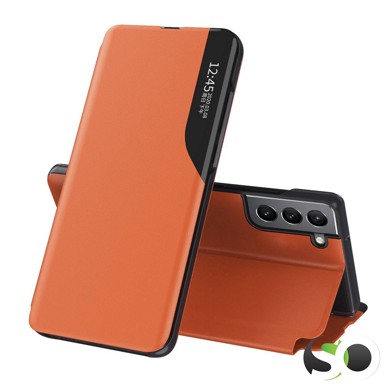 Side Clear View Standing Cover za Samsung Galaxy A12 Narančasti