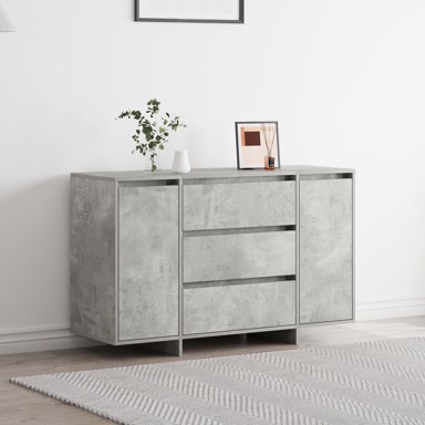 Bočna komoda isijava modernu eleganciju sa svojom betonsko sivom završnom obradom i prilagodljivim dizajnom, savršeno se uklapa u tvoju blagovaonicu ili hodnik. Sa puno prostora, ima nekoliko ladica i ormarića, nudeći praktično rješenje za skladištenje suvremenog života. Prostrano i praktično, omogućava efikasno organiziranje blagovaonskih potrepština i dekoracija. Izgrađena od izdržljivog konstruiranog drveta, Bočna komoda je napravljena da traje i otporna je na svakodnevno korištenje. Savršen dizajn se uklapa u razne stilove interijera, čineći je svestranom opcijom za svaki dom. Klasični dizajn ladica osigurava jednostavan pristup i dopunjuje ukupni izgled dok pruža funkcionalnost. Ravna vrata pomažu održavati uredan izgled, držeći stvari lijepo pospremljene unutra.