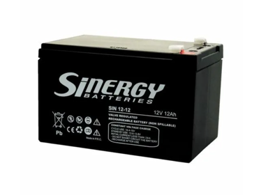 SINERGY baterija 12V 12Ah BATSIN12-12 je olovno-kiselinska baterija za UPS uređaje, kapaciteta 12 Ah i napona 12 V, bez potrebe za održavanjem, pogodna za sigurnosne i rezervne sustave napajanja.