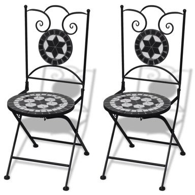 Sklopive bistro stolice 2 kom keramika crno-bijele