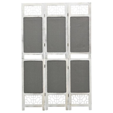 Sobna pregrada štiti vašu privatnost, a može se upotrijebiti i za uređenje spavaće sobe, blagovaonice, dnevnog boravka itd. Samostojeća i elegantna sobna pregrada s 3 panela može se upotrebljavati za ukras ili kao paravan. Savršena je za postavljanje u spavaću sobu kako biste stvorili zasebni, privatni prostor za presvlačenje ili odvojili dio sobe. Uz to, sobna pregrada sadrži snažan okvir od drva paulovnije i MDF-a te je prekrivena izdržljivom tkaninom. Također se može lako sklopiti radi uštede prostora kad se ne upotrebljava. - Boja: Siva i bijela - Materijal: Drvo paulovnije, MDF, tkanina - Veličina: 105 x 165 cm (Š x V) - Debljina panela: 1,6 cm - Sastavljanje potrebno: Da