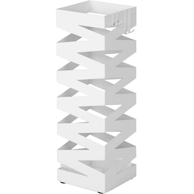 SONGMICS Stalak za kišobrane LUC16W bijele boje savršen je dodatak za vaš hodnik. S dimenzijama 15,5 x 15,5 x 49 cm, metalni stalak osigurava čvrstoću i stabilnost, a dolazi s plastičnom posudom za vodu i dvije kuke za vješanje sklopljenih kišobrana.