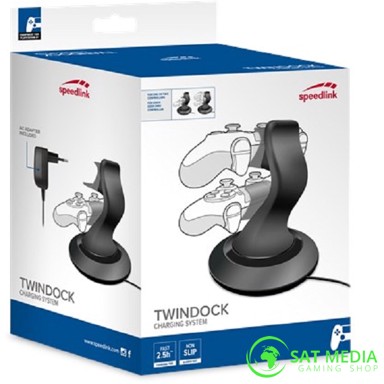 Speedlink Twindock stanica za punjenje omogućuje praktično i brzo punjenje jednog ili dva DUALSHOCK®4 kontrolera istovremeno. Uključeni AC adapter i 1,5 m kabel osiguravaju jednostavno spajanje, a kompletna stanica nudi moderan i kompaktan dizajn uz prosječno vrijeme punjenja od 2,5 sata.