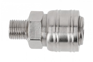 Muški brzi spoj 1/4" namijenjen za spajanje pneumatskih i kompresorskih sustava. Omogućuje pouzdano i brzo povezivanje alata i crijeva u radioničkim i industrijskim uvjetima.