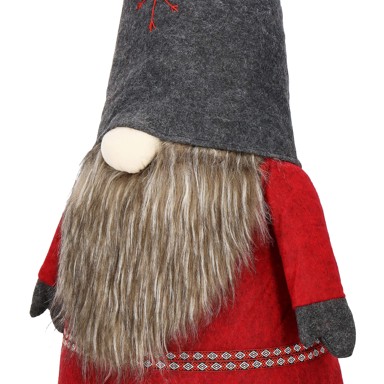 Vilenjak u šeširu s pahuljom visine od 95 do 160 cm izrađen je od filca i dolazi u crvenoj i grafitnoj boji. Teleskopske noge, gusta brada i visoko stojeći šešir čine ga upečatljivim ukrasom za veće prostore. Njegov elegantan izgled i prilagodljiva visina omogućuju kreativno postavljanje u dnevnom boravku, hodniku ili poslovnom prostoru.