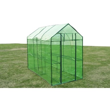 Staklenik može primiti veliki broj biljaka i cvijeća. Idealan je i za početnike, ali i za iskusne vrtlare. Staklenik ima prozirni, zeleni pokrov koji omogućuje protok sunčeve svjetlosti na vaše biljke. Idealan je i za početnike, ali i za iskusne vrtlare. Također je nepoderiv i gotovo nelomljiv, što ga čini izvrsnom zamjenom za tradicionalni staklenik. Čelični okvir obložen prahom je čvrst i stabilan, ali je i iznenađujuće lagan. Ima vrata s patentnim zatvaračem koja omogućuju jednostavan ulazak, kao i prozračivanje. Sastavljanje je sigurno i jednostavno. Nije potreban poseban alat. Imajte na umu da krov našeg staklenika ne podnosi teški snijeg. - Dimenzije: 120 x 240 x 190 cm (Š x D x V) - Boja: Zelena - Okvir: Plastificirani cjevasti čelik - Zeleni nepoderivi pokrov - Broj polica: 2 - Tkanina: PVC: 100%