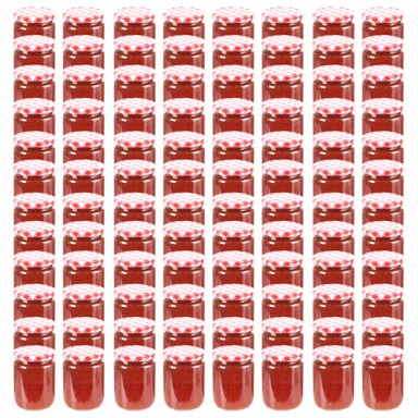 Staklenke za džem s bijelo-crvenim poklopcima 96 kom 230 ml
