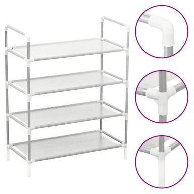Praktični organizator za cipele s četiri police izrađen je od laganog, ali čvrstog metalnog okvira, što omogućuje lako premještanje i stabilnost.