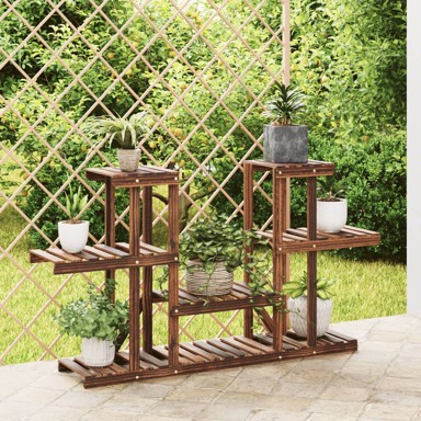 Drveni stalak za cvijeće savršen je izbor za postavljanje i izlaganje vaših biljaka i drugih ukrasnih predmeta. - Izdržljiva jelovina: Stalak za biljke izrađen je od drva jele, koje je čvrsto i izdržljivo te osigurava dugogodišnju upotrebu. Osim toga, zbog pažljive karbonizirane izrade, Drveni stalak za cvijeće izvrsno je učinkovit u pogledu otpornosti na vlagu i vremenske uvjete. - Dovoljno prostora: Stalak za biljke nudi dovoljno prostora za izlaganje vaših biljaka i drugih ukrasnih predmeta. - Široka primjena: S prirodnom karboniziranom bojom i teksturom drva, Drveni stalak za sadilice donosi ukrašenim mjestima dašak retro i elegantnog dojma. Štoviše, simetrični izgled odgovarat će različitim stilovima uređenja, primjerice u dnevnom boravku, na balkonu ili terasi. Dobro je znati: Kako bi sastavljanje bilo što lakše, svaki se proizvod isporučuje s priručnikom. Upozorenje: Kako bi se spriječilo prevrtanje, ovaj proizvod mora se upotrebljavati s uključenim priborom za montiranje na zid. - Boja: Karbonizirana smeđa - Materijal: Karbonizirano masivno drvo jele - Dimenzije: 110 x 25 x 73 cm (Š x D x V) - Nosivost (po polici): 10 kg