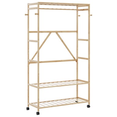 Stalak za odjeću s policama i kotačima 110x40x180 cm bambusa