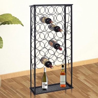 Samostojeći stalak za vino privlačit će poglede na bilo kojem mjestu. Izrađen od kovanog željeza, ovaj vinski stalak u potpunosti ima praškastu oblogu protiv hrđe i trajat će generacijama! Ovaj trodimenzionalni stalak za vino, idealan je za smještaj do 28 boca vina. Klasičan i elegantan stil unosi romantičan ugođaj. Također pruža dodatni prostor za pohranu na dnu, za još nekoliko boca ili drugih stvari. Klasični, elegantni stil pruža romantičan dojam. Također će biti divan poklon za vaše prijatelje i poznanike koji su ljubitelji vina. Uživajte u životu s ovim iznimnim stalkom za vino! - Materijal: Kovano željezo - Crna površina usavršena procesom elektrostatičnog premazivanja - Ukupna veličina: 47,5 x 21 x 100 cm (Š x D x V) - Težina: 4,6 kg - Može smjestiti 28 boca vina