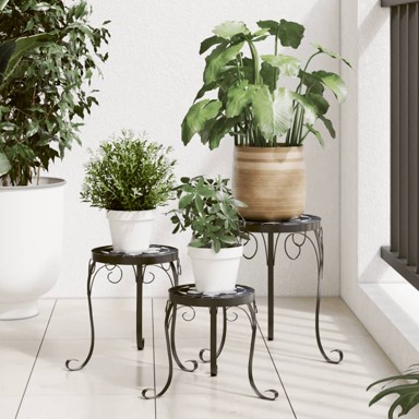 Stalci za biljke, s uzorkom mozaika, postat će središnja točka vašeg vrta, balkona ili terase. - Stabilna ploča stola koja se lako čisti: Ovi stolići za biljke imaju keramičku površinu koja je čvrsta, izdržljiva i lako se čisti vlažnom krpom. - Čvrst i stabilan okvir: Okvir od željeza obloženog prahom osigurava da stolići za sadnju budu snažni i stabilni za svakodnevnu unutarnju ili vanjsku upotrebu. - Uzorak mozaika: Stalci za sadilice pomažu u stvaranju mediteranskog ugođaja u vašim unutarnjim ili vanjskim okruženjima s uzorkom mozaika. - Boja: Crno-bijela - Materijal: Željezo obloženo prahom, keramika - Dimenzije stalka (L): 26 x 35 cm (Promjer x V) - Dimenzije stalka (M): 22 x 28 cm (Promjer x V) - Dimenzije stalka (S): 20 x 23 cm (Promjer x V) - - Isporuka sadrži: - 3 x stalak za biljke