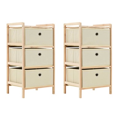 Stalci za pohranu od cedrovine s 3 košare od tkanine 2 kom bež