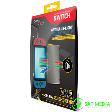 Steelplay Anti Blue-Light zaštitni ekran za Nintendo Switch izrađen je od kaljenog stakla klase 9H s dodatkom filtra plavog svjetla koji smanjuje naprezanje očiju i pomaže u prevenciji nesanice. Tanak dizajn od 0,33 mm sa zaobljenim rubovima zadržava izvornu osjetljivost na dodir i kvalitetu slike, a paket uključuje zaštitni ekran, lopaticu i krpu za čišćenje.