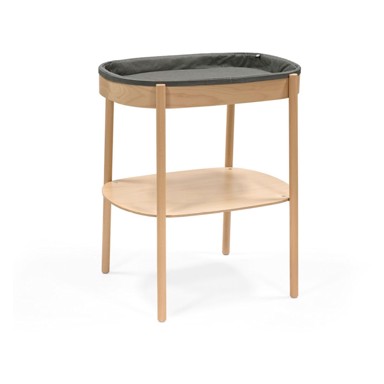 STOKKE Sleepi stol za previjanje u boji natural savršen je dodatak dječjoj sobi, posebno dizajniran da se skladno uklopi uz STOKKE Sleepi krevetiće. Njegov ovalni oblik i skandinavski dizajn pružaju estetiku i funkcionalnost. Stol je idealne visine za udobno previjanje bebe, a dolazi s mekom, podstavljenom podlogom. Otvoreni prostor za noge omogućuje roditeljima da se približe bebi, dok velika donja polica nudi praktičan prostor za pohranu potrepština. Moguće je postaviti stol bočno ili frontalno, ovisno o rasporedu sobe