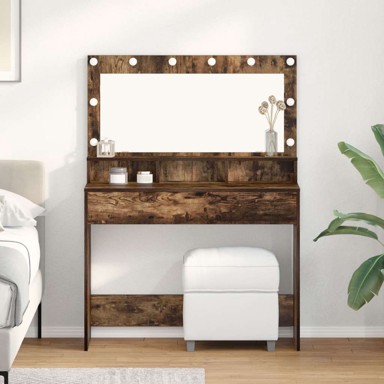 Moderni set toaletnog stola u dimljenom hrastu kombinira stil i praktičnost. S pravokutnim oblikom, velikim ogledalom i dobrim osvjetljenjem, idealan je za sve... Pročitaj više
