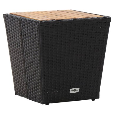 Uživajte u ugodnom vremenu za čaj uz ovaj rustični čajni stolić. Bit će zaista praktičan i privlačan dodatak vašem vrtu i terasi. S čeličnim okvirom s praškastim premazom obloženim ratanom od PE-a otpornim na vremenske utjecaje i sa zaštitom od UV zračenja, ovaj stolić osigurava dugogodišnju upotrebu na otvorenom. Napravljena od masivnog bagremovog drva za snažnu potporu, stolna ploča izdržljiva je i čvrsta. Ovaj stol jednostavno se sastavlja. - Boja: Crna i svijetla boja drva (stolna ploča) - Materijal: Ratan od PE-a, čelik - Materijal stolne ploče: Masivno bagremovo drvo - Dimenzije: 41,5 x 41,5 x 43 cm (D x Š x V) - Kompaktni dizajn - Sastavljanje potrebno: Da